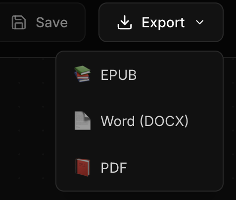 EPUB, PDF, and DOCX files instantly. One click formatting for every platform.