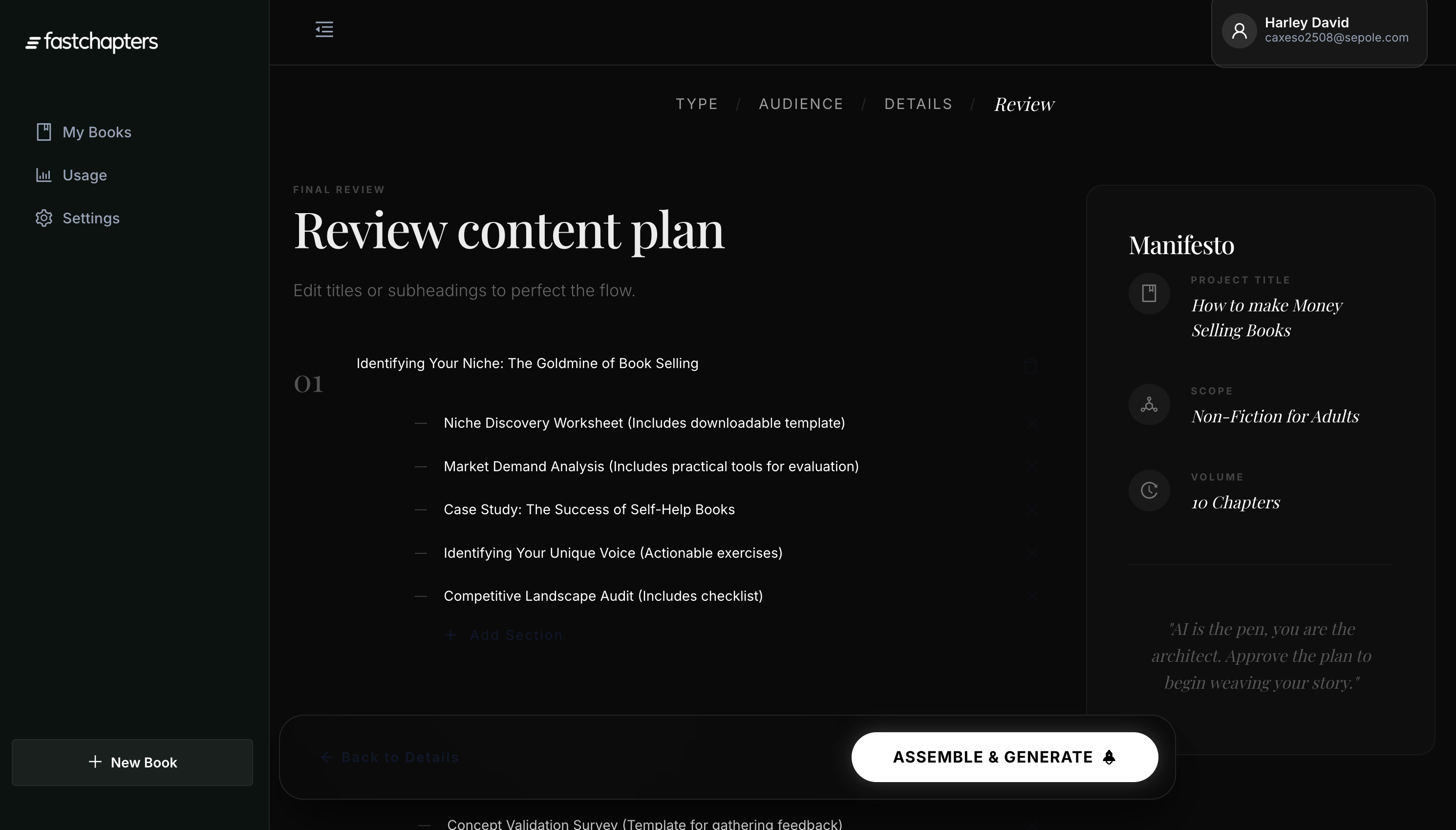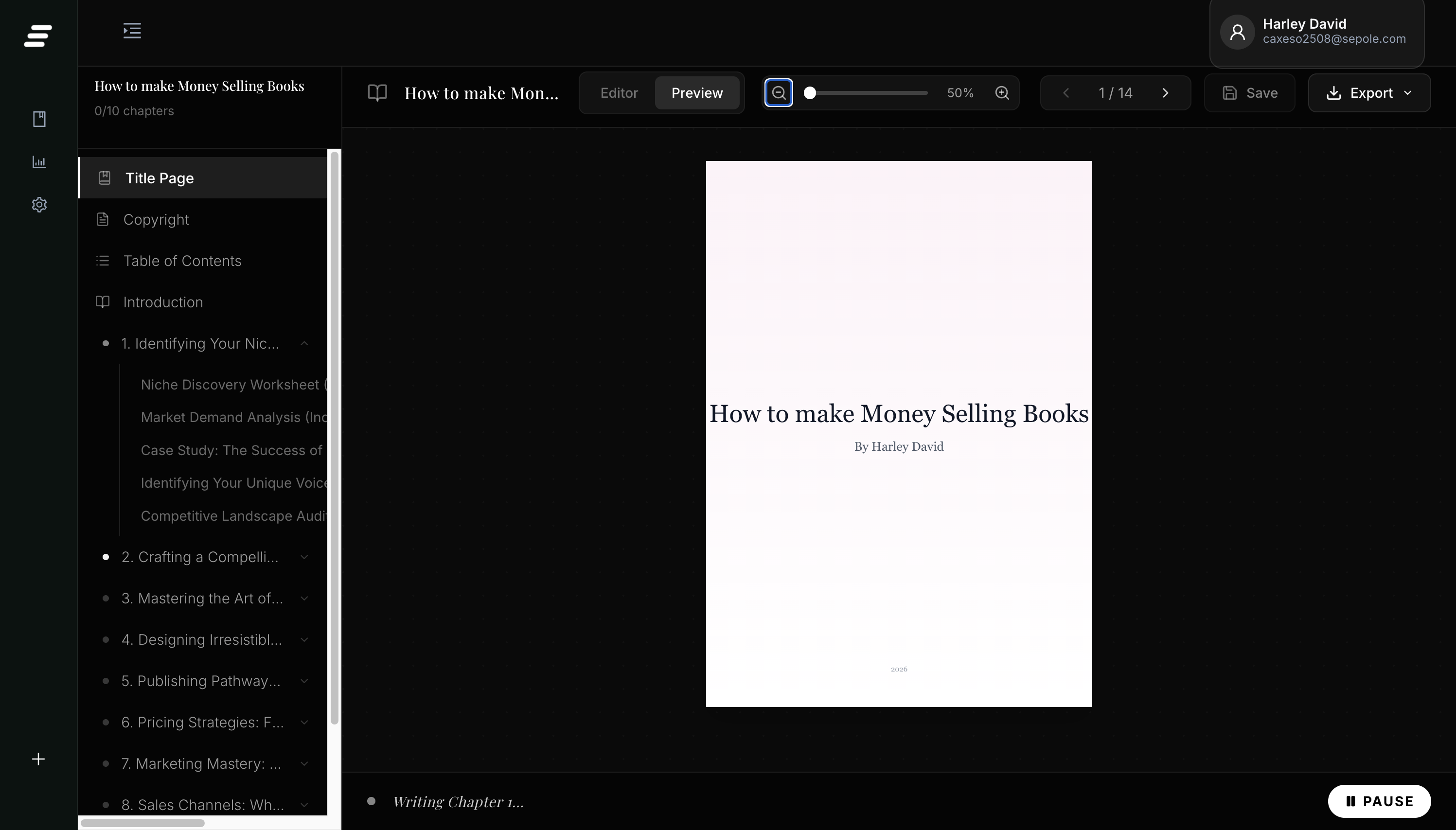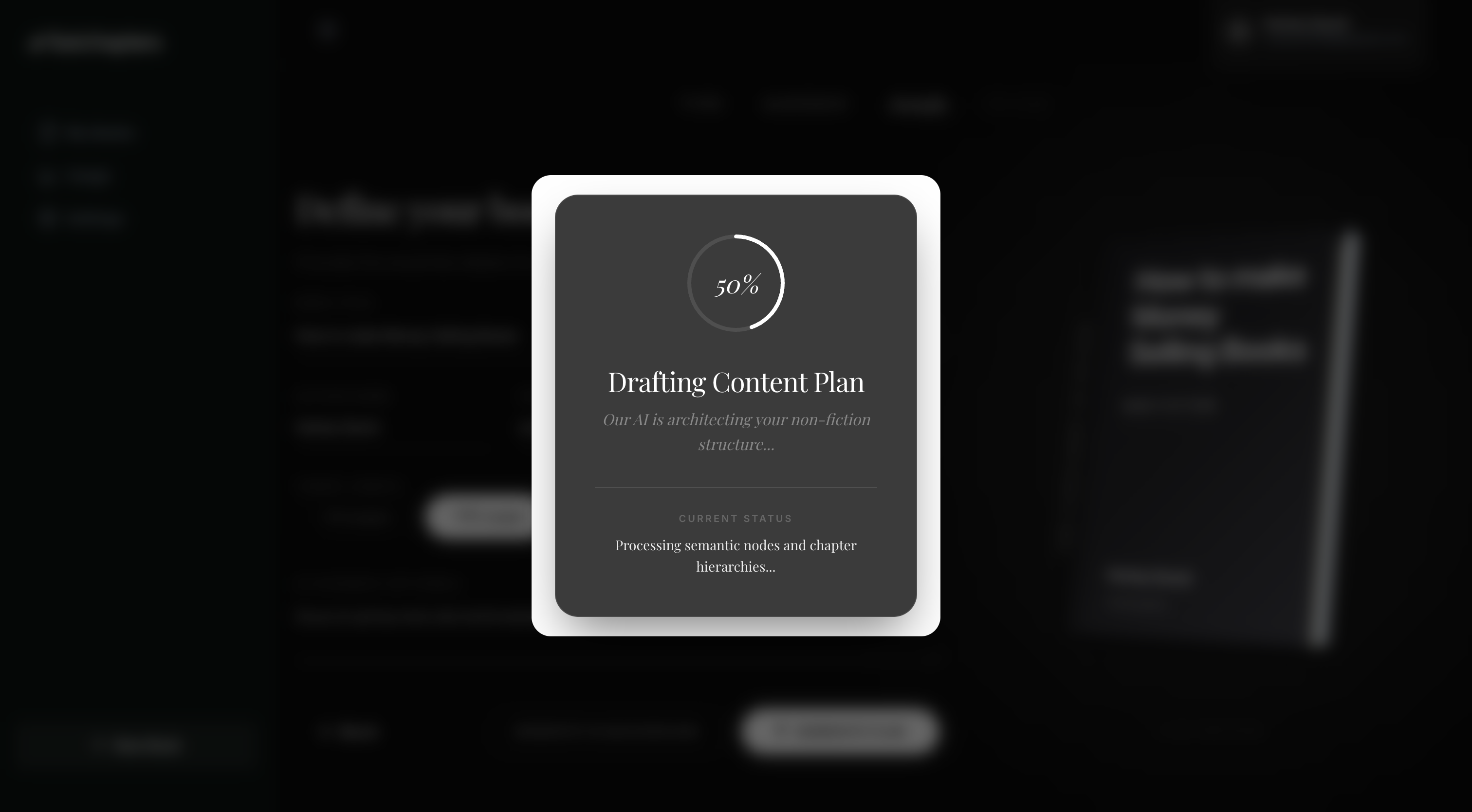 Structure your book with ease. AI helps you generate a high-selling outline in seconds.